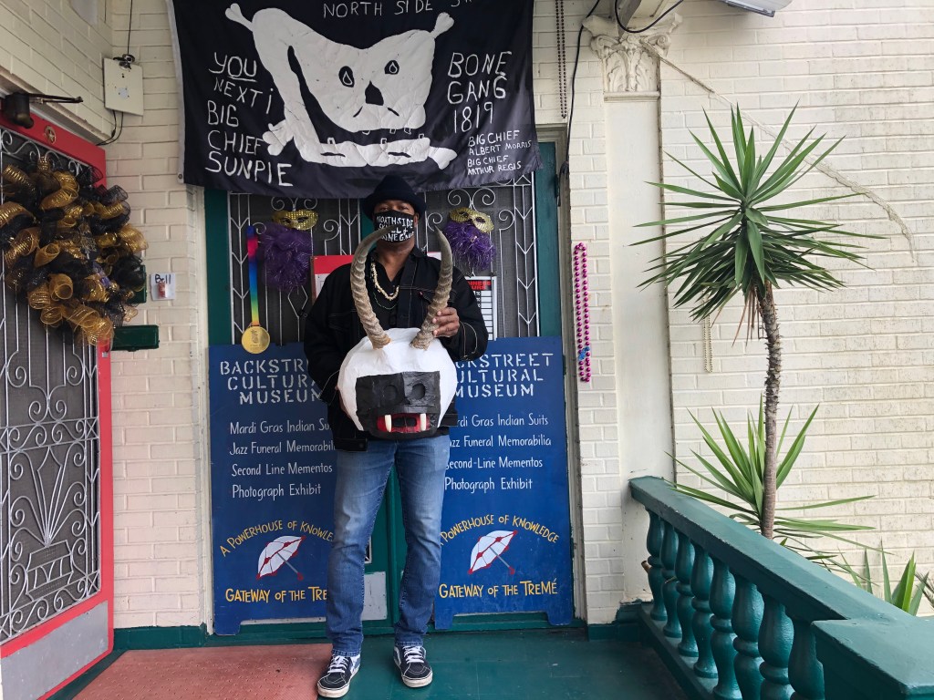 In recent years he was diagnosed with diabetes. In 2019 it had gotten so bad that he needed dialysis and had suffered a stroke. But by Mardi Gras morning 2020 he had stopped needing dialysis treatment, could walk on his own, and managed to drive himself to Treme to mask with the Skull and Bone Gang.