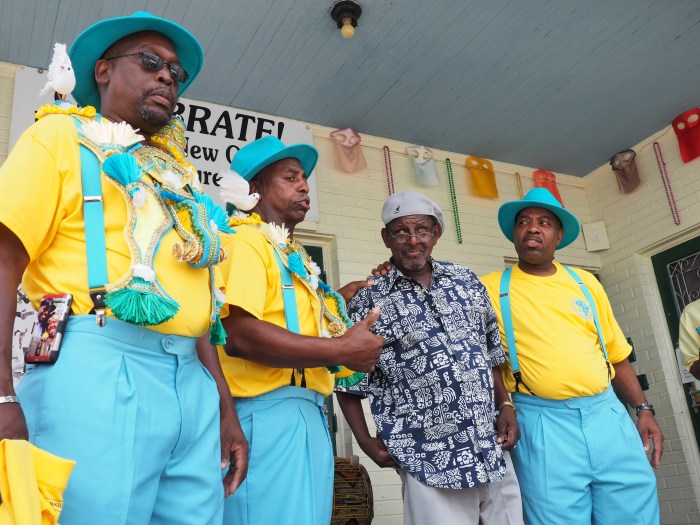 Chairman of the board of the Backstreet and Northside Skull and Bone Gang Big Chief Bruce “Sunpie” Barnes had plans to honor Boutte, Lewis and Francis on Mardi Gras morning by singing and chanting on the Backstreet porch.